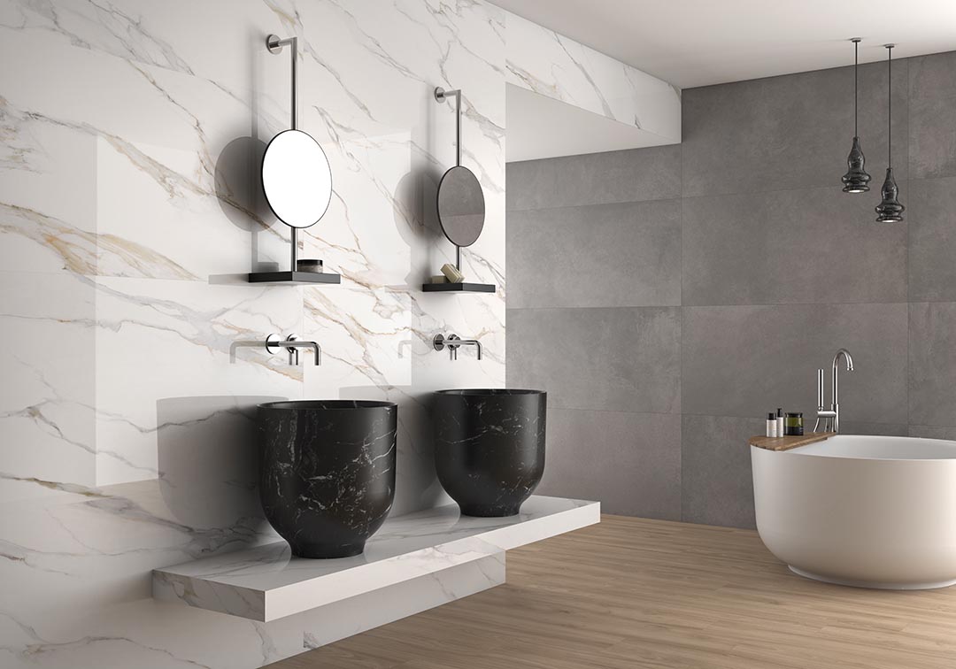 Ofrece infinitas posibilidades de diseño que van desde inspiraciones naturales como el efecto madera, piedra o mármol, urbanas, como el efecto cemento y metal, hasta opciones variadas de medidas, texturas, formas, patrones geométricos y motivos. En cuanto al color, puedes diseñar un espacio que presuma modernidad y frescura con el sobrio porcelánico blanco o utilizar tonos ligeramente más oscuros, negro, azul, rosa y verde, los cuales otorgan una suavidad característica, para crear el estilo deseado transformando un ambiente en una obra de arte.
